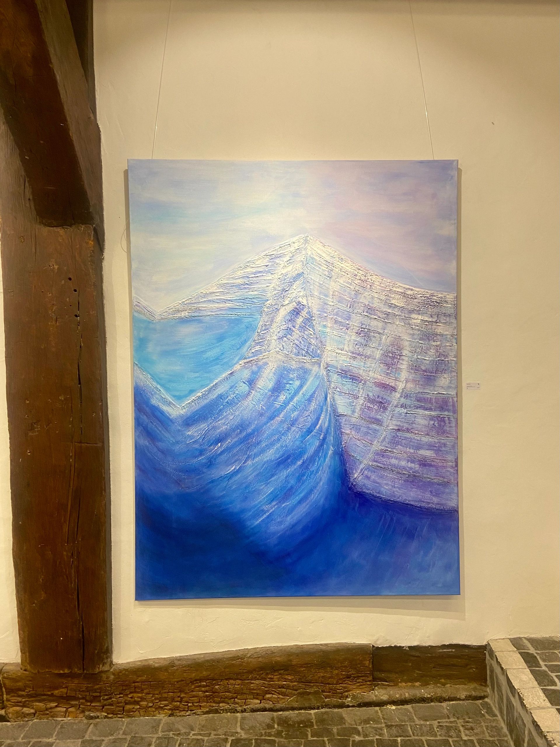 Water as essential element that flows, moves, changes with different external elements as the wind. Change, that we human beings also constantly undergo. Water used as a mirror that represents the world which turns its reflections. She is always intrigued about the concept of what is ‘deep’ or ‘underneath’ represented ‘under the ‘water’ and what is on the ‘surface’, and she symbolises and plays with multiple colours at the same time to construct this idea. What is in your mind and what is that you really verbalise, or express towards outside.