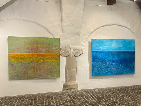 On the central point of Alejandra Patricia´s work stays an intuitive strength, that is transmitted not only through the bright colours and shapes, but also through the structure creating abstract landscapes, where micro universes are formed in a reciprocal dialogue with the use of different materials like pigments, gesso, etc. that she uses in combination with basically acrylic. She loves to represent the deconstructed image that she has in mind to construct, to embrace a new one through the texture. This helps her with the use of different colours to light up a continuous movement, rhythm, that goes beyond what is realistic. It is a language that has its own rules, that tries to go further away the painting, and embodies her wish to fully be herself, to be present in the world. ‘I am the enhancer’ she says ‘of what is going on’.